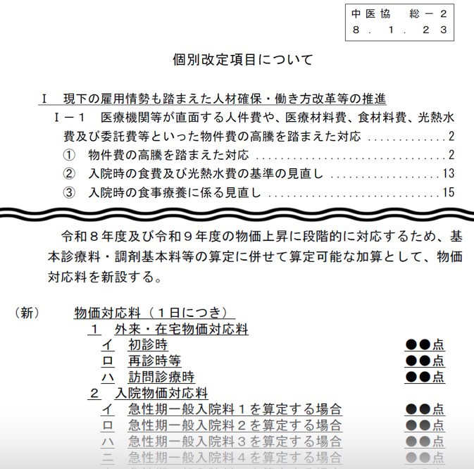 2026年診療報酬改定情報 物価上昇は物価対応料を新設(個別改定項目)
