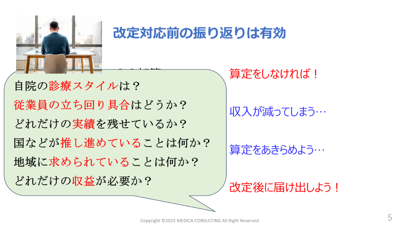 今回は、診療報酬改定の年に考えることを配信しています。